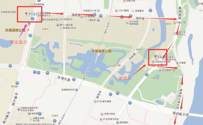 公交站点:洋湖湿地公园站(距离起点100米)