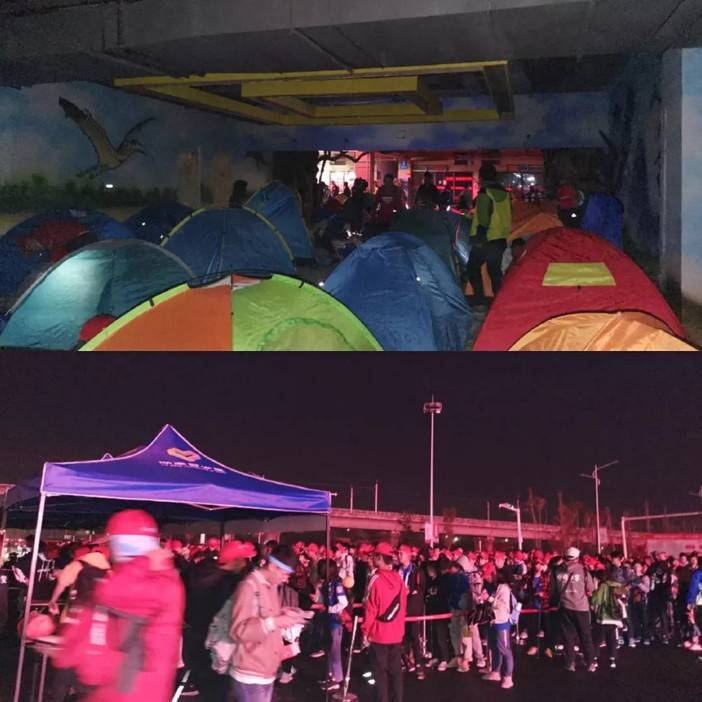 最心酸的时刻是,右腿已经抽筋了,还得自己找地方搭帐篷。好不容易找到一个淋不到雨的地方,管理人员说:“同学,这里不能搭帐篷!”