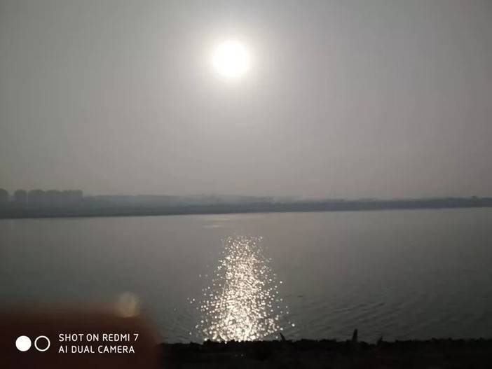 我们互相逗嘴,连路人都被逗笑了。朝阳晒在宽阔的河面,微风轻拂,使我们感到神清气爽,不禁放声高歌。