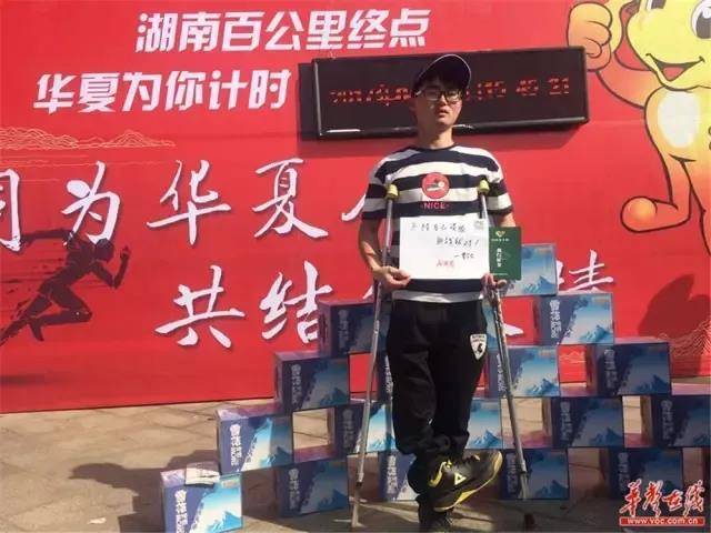 2017年湖南(秋季)百公里的终点,一个拄着双拐的少年格外引人注意,他就是那个用单脚丈量每寸毅行路的双拐勇士——曾令公。