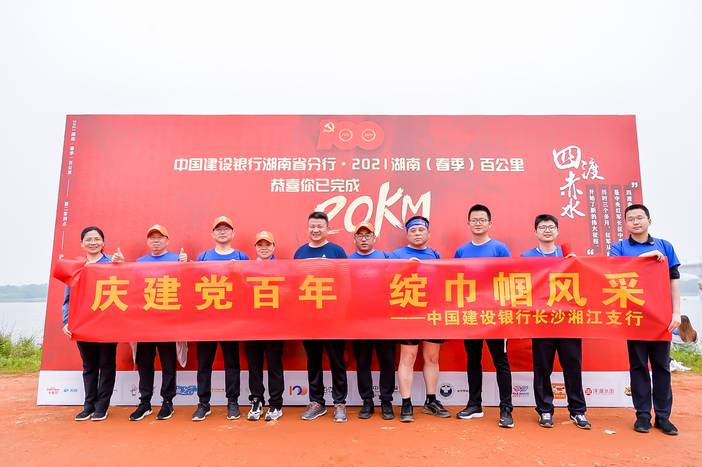 在建党100周年之际,建行长沙湘江支行结合党史学习教育工作,联合湖南日报社于4月17日组织开展了“闪耀的足迹”百公里毅行主题党日活动,通过徒步行走的方式过好“政治生日”,开展党性教育,增强党性修养,进一步深化对党的性质宗旨的认识,增强党的意识、党员意识。