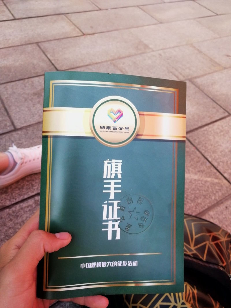 第二天的路更难走,但是我心里没有一丝畏惧,全天仅在路餐点休息了一次。当我把旗手证书给你看的时候,你说我是你的骄傲,为我自豪。