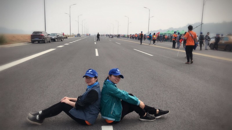 一路马不停蹄的走着,沿途的风景都还不及合照。从出发点到第二签到点,整整走了5个小时,但再苦再难,依然要保持昂扬的精神状态。说实话,真的不是一般人能够坚持的,经期期间,还这样长途的步行,我也是很佩服我自己的体力。脚底磨出了水泡,很多人都不愿意走了,走走停停,但是我心里一直在想着,我过来就是要拿证书的,就是为了证明自己一定可以的。就这样慢慢的坚持了下来。路上有边走边笑的,一路高歌的,还有一对对情侣手牵手一起走的,还有穿着迷彩服拉练的。。。。。每到一个点,都有志愿者负责人提醒我们还有多久能到,要坚持,现场负责签到的兄弟连志愿者提醒每一位前来签到的毅行者,距离下一个签到点还有8公里,需要在下午两点钟之前到。疲惫的身心告诉我自己,没有尽头的路,只有不停的走。告诉自己,前面有帅哥,前面有美女,前面还有大好河山等着我去征服!加油!