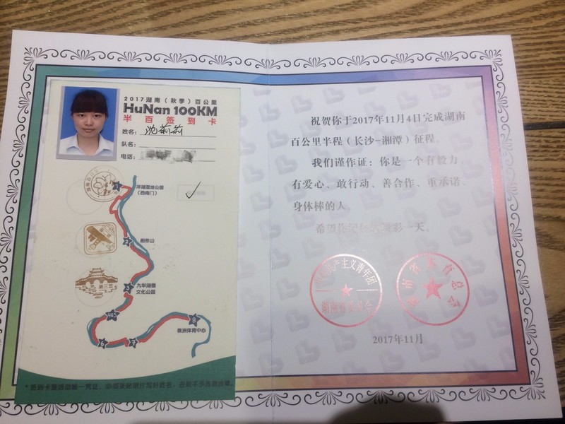 2017年11月4日,我参加了湖南百公里的活动。内心充满了期待,也为自己第一次报名的勇气点赞。
