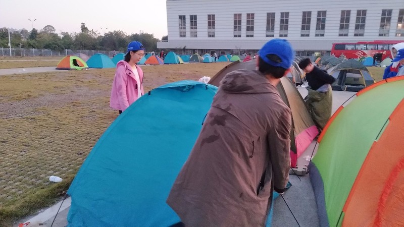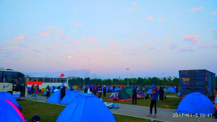 拖着沉重的步伐,透支着身体最后的一丝力气,向着最后的签到点出发。路途中,我们走过宽广大道,也走过全泥泞小路,不管是宽广大道还是泥泞小路,都是通向终点的道路。此时脚上的水泡磨砺着我们的意志,每次水泡与鞋的碰撞都在穿刺在头脑中,但我们还是拖着脚坚强的向着目的地一步一步缓慢的驶近。太阳被山腰使劲卡着,似乎是在为我们指引前行的路,她尽量的陪伴着我们,但自然规律永远也无法改变,最终她还是去了山的那边。夜色降幕,终点近在咫尺,此时,这双腿已经完全脱离于大脑,完全不听大脑的使唤,上台阶都是靠着同伴的搀扶。那时真的很累很累,只想着可以快一点度过在湘潭的第一夜。签到,领帐篷,扎帐篷,本来可以很轻松解决的事情我们却做的如此艰难,劳累还是占据了我们身体的全部,脚已抬不起,更没有想外出吃饭的想法,只得拿出手机选选外卖,慰劳一下使劲叫唤的肚子。坐在自己搭建的小帐篷里,虽吃的是外卖,但是内心却是那样的满足。也许也是因为自己这么久以来第一次睡帐篷,所以才会令我如此之兴奋。人生路上亦如此,我们总是在不断地尝试新的事物,在不断地摸索前进,会为了新鲜事物而驻足,会为了自己的挑战成功而骄傲自豪。