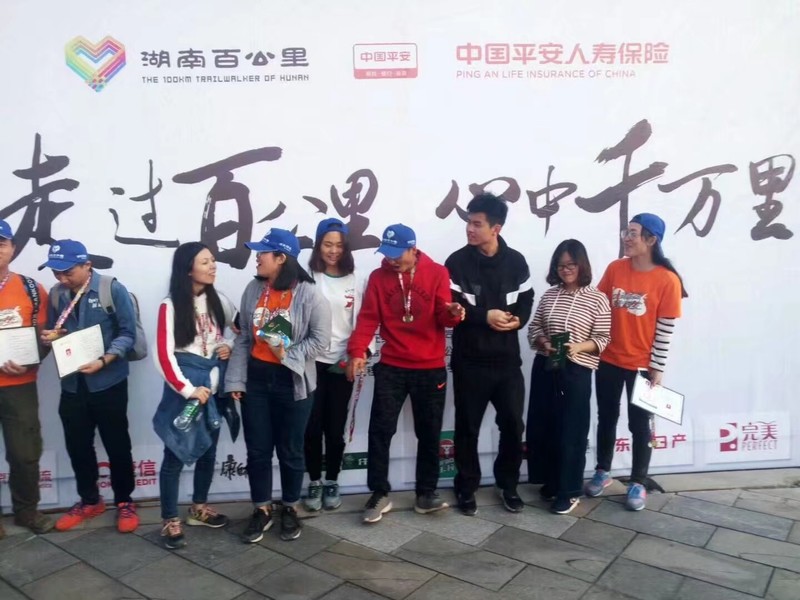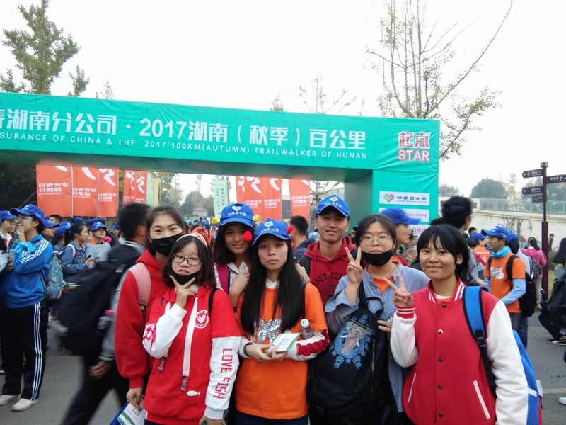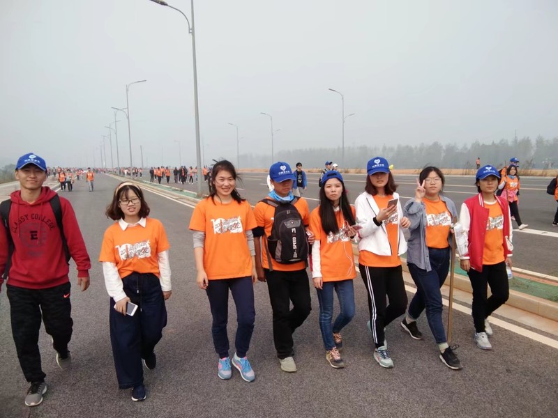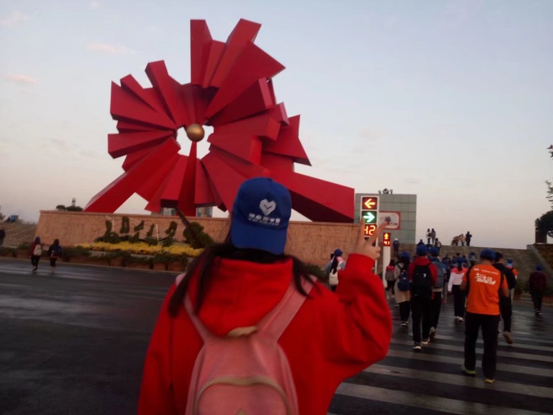 江边的朝阳很美,我们亦是不一样的毅行者们。那是第二天的出发点,朝阳在红色的“湘潭之花”身后散发着光芒,天际弥漫着轻纱似的薄雾,美的不可方物。日出之美在于它脱胎换骨于最深的黑暗,我们,与众不同在于一路的坚持,怀揣着自己的颜色,往一心要到的地方。大概已经走了很远了。从日初到晌午,至矣暮暮。路途中不止一次的埋怨过自己的决定,抱怨过路途的艰辛,也不知一次的告诉自己再走一段路的吧,也许前方就是签到点呢。恍惚漫漫征途都在我脚下,最初的我只是想趁年轻多尝试,寻找不一样的自己,不曾想,一百公里我也可以。 坚持就是希望,哪怕他是黯然缥缈