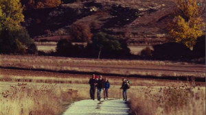 一路行进,我们东拉西扯。我步履欢快地走在前面,偶尔蹦跶一两下。王磊对展别说,“你看他,像个没事人一样。穿着运动鞋就是好些。”一路上他已经为他穿帆布鞋过来抱怨过无数次了。展别笑说,“那你上去推他一下,看他倒不倒。”