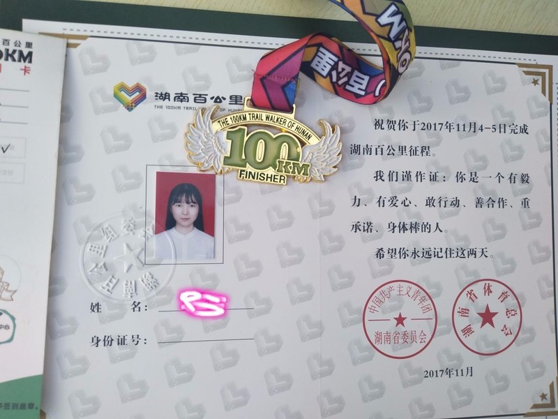 恭喜你!你已经成功走完了百公里,没错,就是那个许多人因害怕而不敢尝试的百公里,就是那个许多人参加却无法坚持到底的百公里。没错,那个许多人做不到的,而你做到了。一步一步地走到了终点,一步一步地走向了成功,就这样成功地战胜了那个有着薄弱自制力的自己。