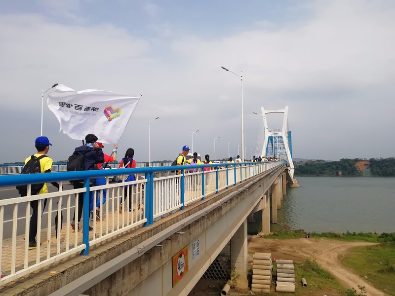 在湘江的大堤上 跟着不见首尾的黄色长龙徐徐摆动