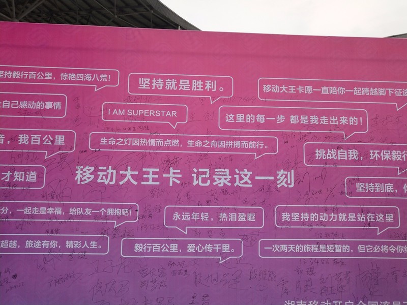 谢谢你们。第一天一直在说放弃,不想坚持。说明天一定要坐车,是你们一直在劝我。既然来了就一定要坚持。不能中途而废。晚上有点中暑。也是你们一直关心着我,给我药叫我多吃点盐分。我走的慢,你们就在前面等着我,不知道等了多少回。还有很多很多,谢谢!!!此处@各位小伙伴!此次毅行我没有后悔我想我这辈子都不会后悔!我做到了!当我离终点只有一百米的时候我哭了!我真的哭了!我不敢相信我做到了!一条河俩万人三座城见证了我们各自的努力!我相信只要坚持克服自己就一定能成功!谢谢百公里!