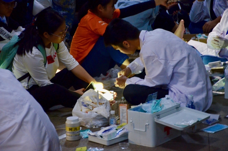 快到重点的那段路真的是漫长而又遥远,像走了几个月,几个世纪。原先雀跃的心境已然改变,蹦蹦跳跳的脚步变得拙笨无力,但百公里的重点还是在等着我呀!脚上起泡了,顶着我的鞋子,有点像踩在气垫上一般,软软的,却又担心它破裂,还是遇到了一群有趣的人儿,第一次、第二次、第三次,我相信第四次也应该如是吧。