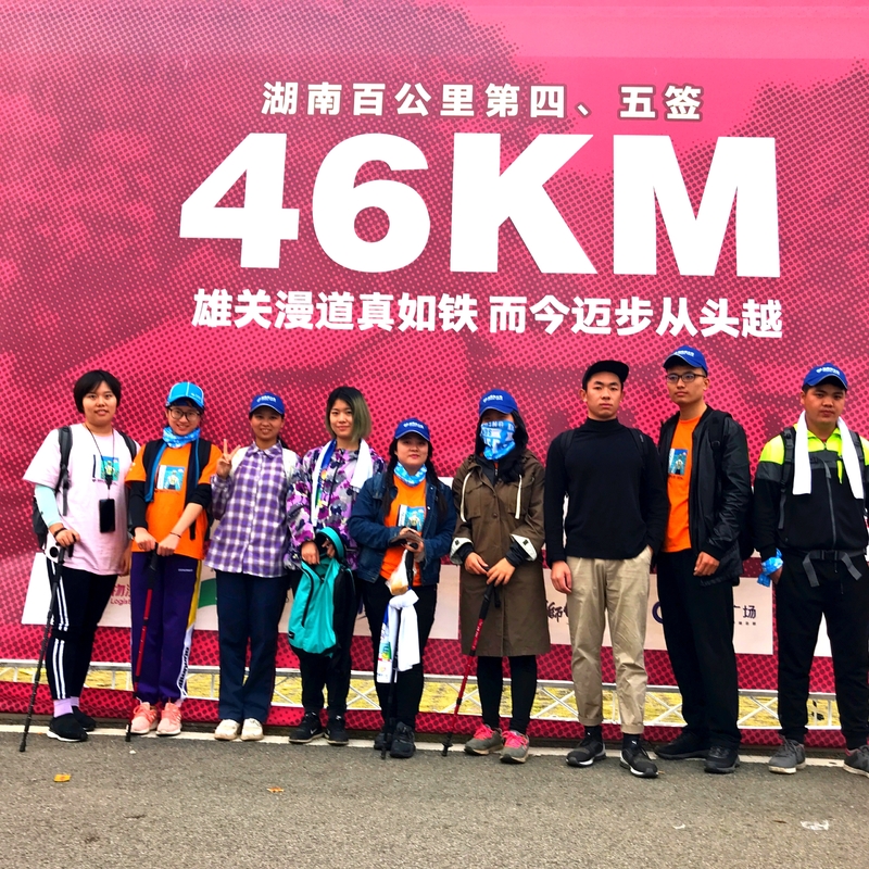 了一愿,才不留遗憾!2018年秋季百公里毅行了却了我16年最后一签坐车的遗憾。回首百公里,坚持到最后的都很棒!坐车的感受与没坐车的感受真的是天壤之别,记得16年春季最后一签下着雨脚底磨起了四五个大水泡,戳破的疼痛感让我选择最后一签坐了车。18年秋季终于意志坚定没打车,脚底也有泡。可还是坚持走到了终点,真的说起来都是很自信,我走完了全百。我真的走完了全百,没错我还能再走十公里哈哈哈哈哈哈哈嗝(笑出猪声),比起16春季的自信,这才是真自信。一步一个脚印踏在去往株洲体育中心的路途上。虽然这次没有风雨泥泞可有洒不尽的汗水!