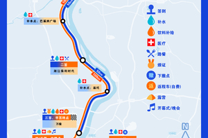| 第七签到点 | 滨江南路风光带小广场 | 8:30—14:00 | 签到,补水,医疗,路餐,饮料,下撤点 | 11 | 63 | 路餐发放 |