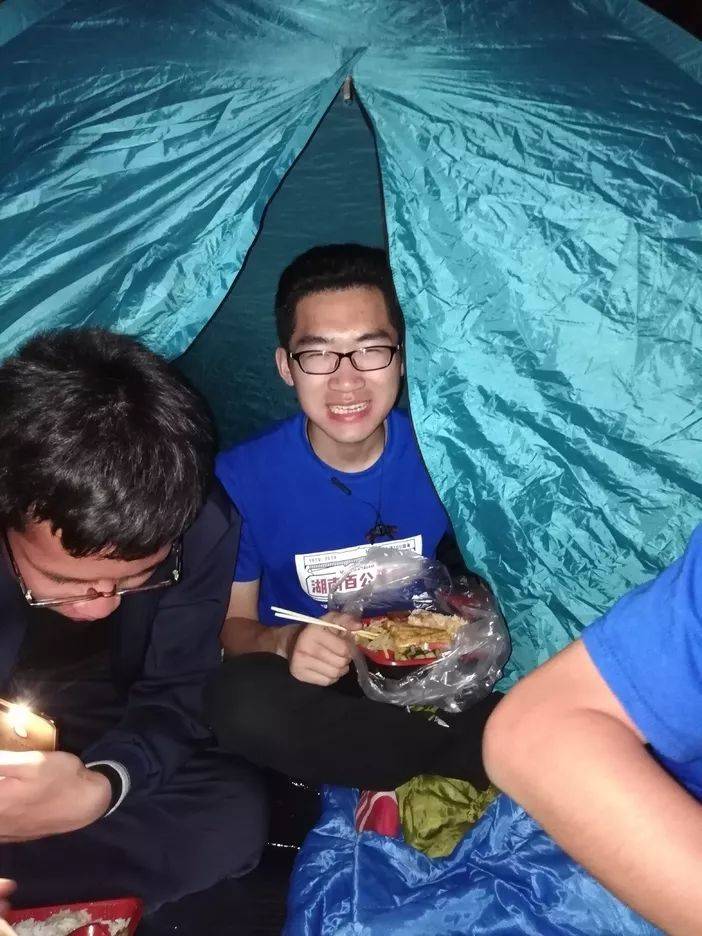 当四个快“痿”了的男人抵达湖南工程学院的时候,抱在一起用沙哑的声音嘶吼着“我们做到了!我们做到了!”我们饶有成就感的走向签到点完成签到和领取帐篷,帐篷是十分简易的十字形帐篷,再了解帐篷的构造后,我和老胡麻利的把我们的帐篷铺好了。后面又给两个小队的人们搭好了帐篷,买来了工程学院的简易路餐,其实味道不咋地,但是四个人吃的是真的香,特开心特充实。