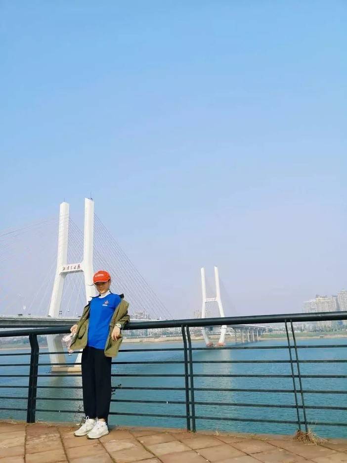 桥底下、台阶上全是蓝衣服红帽子,匆匆吃完午餐便要跨过湘江了。
