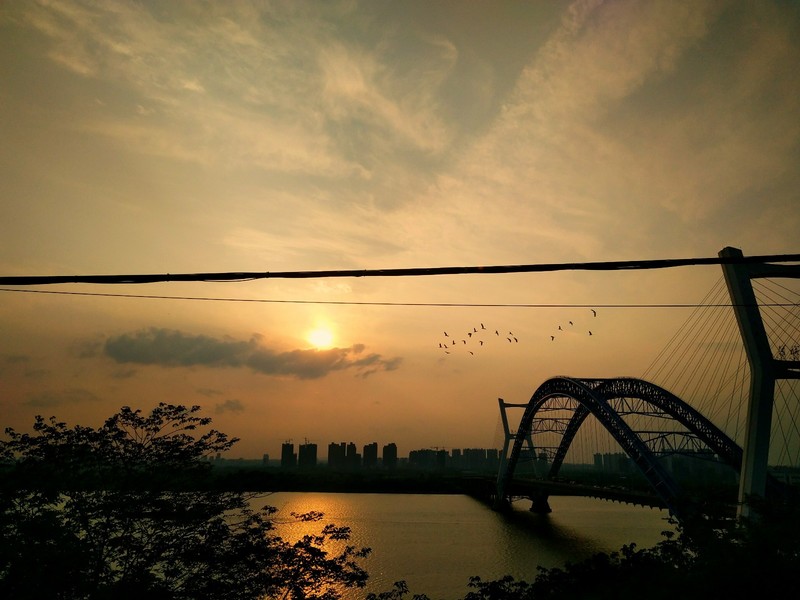 走走停停几多回,遇见黄昏下的夕阳,足以让我忘记日行多里的疲惫,我用心定格住这一天的落日,又遇上一群可爱的飞鸟,于夕阳处留恋,我百般感动并十分敬畏大自然所给予我眼前的这一幕,以至于我激动地边拍边发出了感叹:“哇…哇…哇!”一个二十岁的姑娘于感动中作出的反应竟像是一个孩子,不能自已。