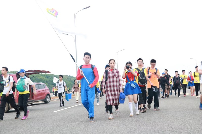 一路上与旗手做伴与风雨兼程 ,遇到了很多很多的人,而与上次不同的是:感觉上次我的眼里全是走不动的“丧尸”,这次是精神满满的毅行者,所以你是怎样的,你在意的东西就是怎样的,另外有一个小姑娘就要死要活的一直在旁边问:“还有多久到下个签到点啊!!!!”我想:到了签到点还不是得继续~那么累的啊,为什么不把目光放长远一些呢?现在走在路上,我一眼就能辨认哪些是第一次参加哪些是经常参加这个活动的人,上次我觉得自己是以郊游的目的来的所以100km对我来说太漫长,而这次才是真正的毅行者。